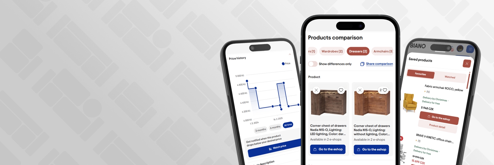 Sabe exatamente o que procura? Perfeito! No Biano, pode comparar ofertas de centenas de lojas e encontrar o melhor preço num instante. Procura inspiração? Nós ajudamos: as nossas ferramentas inteligentes mostram os melhores produtos, descontos reais e ajudam-no a escolher exatamente o que combina com a sua casa. Criamos funcionalidades que poupam horas de pesquisa e eliminam a incerteza na hora de tomar decisões.