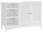 Maximizar o espaço em sua casa de banho nunca foi tão fácil, e isso é graças a este móvel Kleankin. Seu belo desenho branco, com desenho em ripas belos puxadores de metal e a cor branca, conferem-lhe um visual moderno e elegante. Este móvel em MDF integra-se facilmente na sua casa de banho. Especialmente projetado para ficar embaixo do lavatório, ele tem um recorte em forma de U para encaixar no lavatório e nos canos