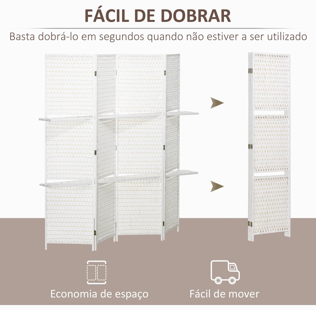 Biombo Divisor de 4 Painéis Dobrável Separador de Ambientes 181x180cm Divisor de Ambientes com Prateleiras Decoração para Dormitórios Sala de Estar Br