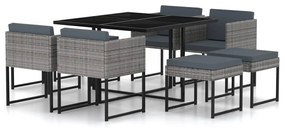 7 pcs conjunto jantar exterior com almofadões vime PE cinzento