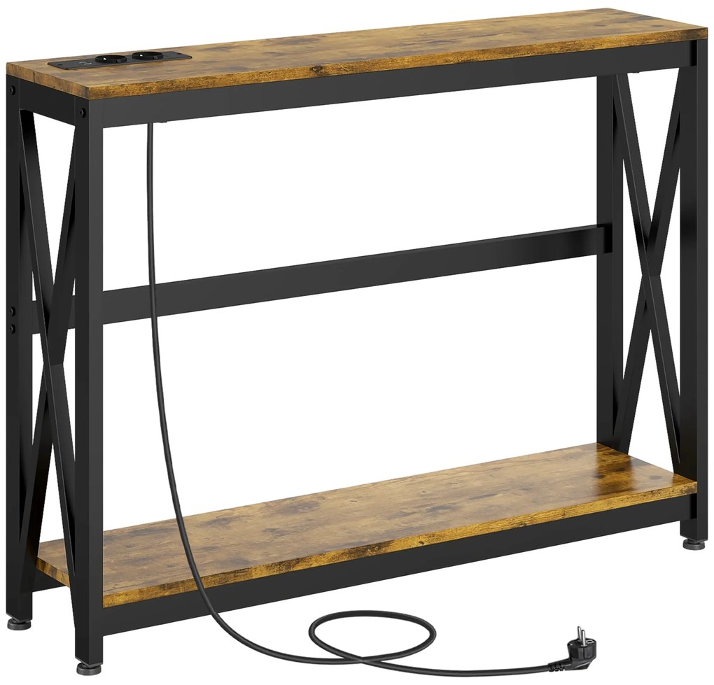 HOMCOM Mesa Consola de Estilo Industrial Mesa de Entrada de 2 Níveis com Estação de Carregamento 100x24x75 cm Castanho Rústico