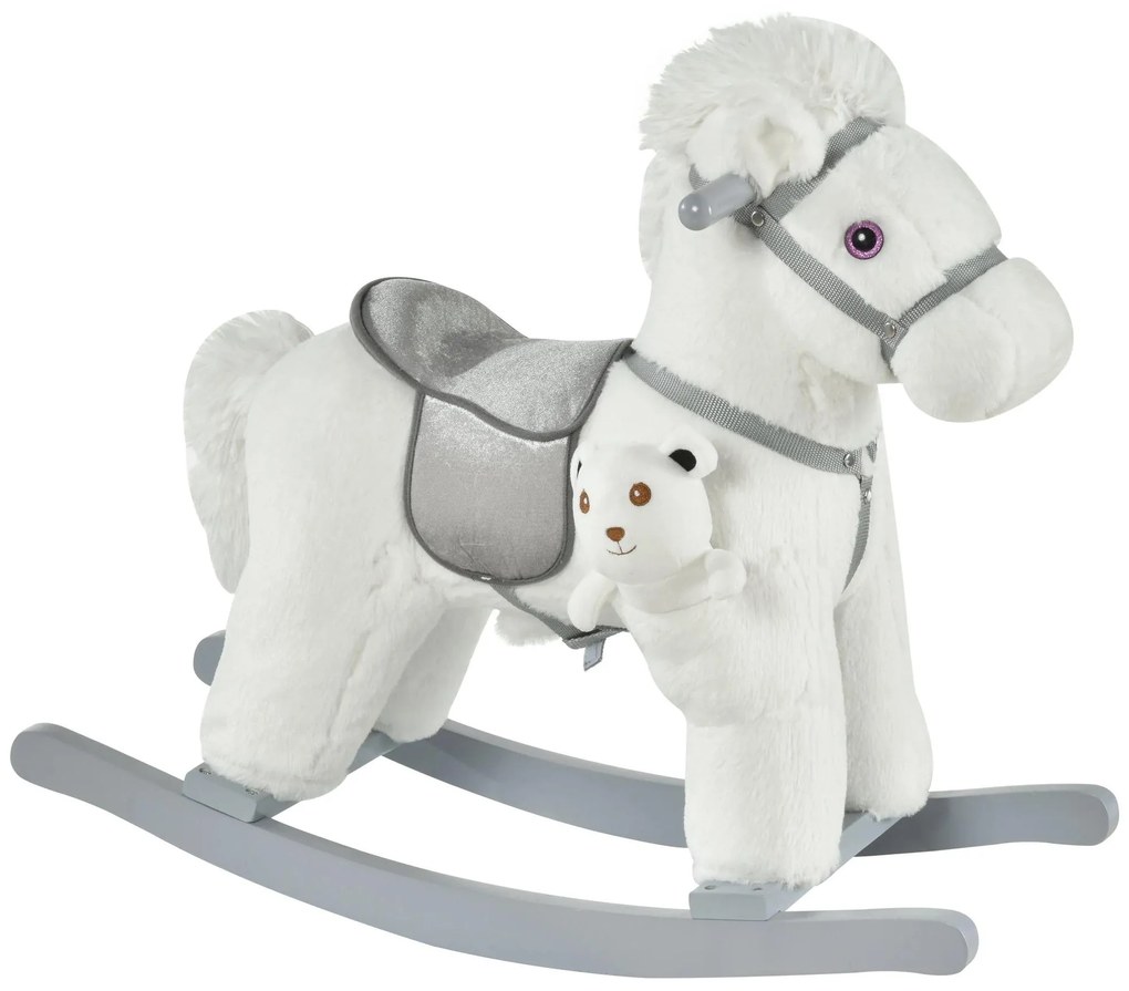 - FORMA DE CAVALO: Este baloiço infantil em forma de cavalo é o presente perfeito para os mais pequenos de casa. Se divertirão ao mesmo tempo que reforçarão sua musculatura, equilibrio e coordenação. Perfeito também para decorar habitações infantis - SONS REALISTAS E URSO DE PELÚCIA: Ao pressionar uma das orelhas do cavalo, este baloiço emite sons autênticos que simulam o som de relinchos e galopes. Além disso, inclui um ursinho de pelúcia que se pode colocar em um bolso que possui uma das patas do cavalo - ESTRUTURA RESISTENTE: Baloiço com base para balançar de madeira de choupo, estrutura interna de metal devidamente acolchoada e estofada em um agradável tecido de pelúcia. A base maciça permite as crianças se balançar para frente e para atrás de forma suave e segura - MÁXIMO CONFORTO: Este baloiço infantil conta com um amplo assento acolchoado e um guidão de madeira de fácil aderência, para que as crianças brinquem de forma suave e segura - MEDIDAS TOTAIS: 65x26x55cm (CxLxA). Altura do assento: 45cm. Peso máximo suportado: 30kg. Certificações: EN71-1-2-3 e EN62115. Recomendado para crianças de 18-36 meses
