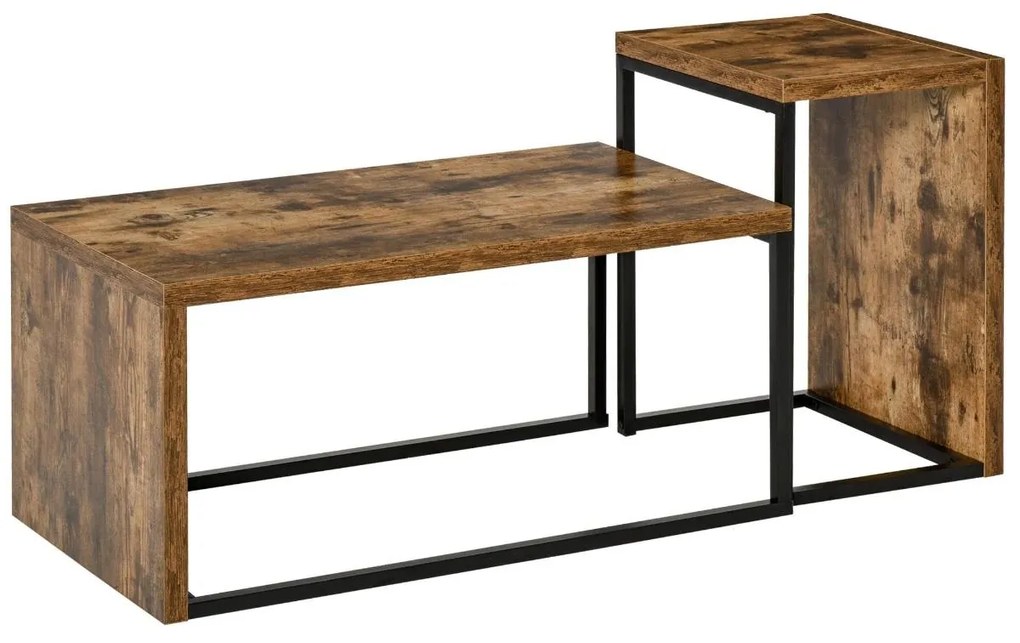 HOMCOM Conjunto de 2 Mesas de Centro Mesinhas de Café com Pés de Metal Estilo Industrial para Sala de Estar Sala de Jantar 90x48x42cm e 59x42x36cm Marrom Rústico