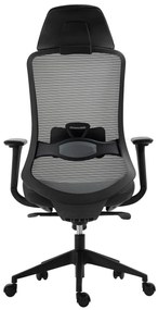 A Cadeira de Escritório WORK foi desenhada para proporcionar conforto máximo e desempenho ideal durante longas horas de trabalho.. Com estrutura robusta em nylon preto, encosto ergonómico em formato "S" com apoio lombar ajustável, braços 4D e mecanismo multifuncional, adapta-se perfeitamente às necessidades de cada utilizador.. O encosto em rede respirável e o assento em espuma de memória revestido a pele sintética garantem conforto e suporte contínuos.. Ideal para escritórios profissionais ou home office.. Características:. Cadeira de escritório alta com design ergonómico e funcional. Estrutura em nylon preto com encosto super alto e cabeceira ajustável. Encosto estofado em rede preta translúcida com suporte lombar ajustável. Assento em espuma moldada com espuma de memória e revestimento em pele sintética preta. Braços 4D ajustáveis em altura, largura, profundidade e rotação, com apoios em PU macio. Mecanismo multifuncional com controlo duplo e múltiplas posições de ajuste. Elevação por cilindro pneumático com acabamento preto. Base de nylon com rodas silenciosas de 50 mm. Produto entregue desmontado – sistema KIT com instruções. Especificações:. Cor: Preto. Materiais: Nylon, rede, pele sintética, PU. Medidas: 66,5 x 56 x 124,5~134,5 cm (LxPxA). Volume da embalagem: 0,13 m³. Embalagem: Plástico e Cartão. Unidades por embalagem: 1. Importante: Este produto possui um test report emitido por um laboratório internacional aprovado, garantindo conformidade com a norma UNE ou o seu equivalente internacional.