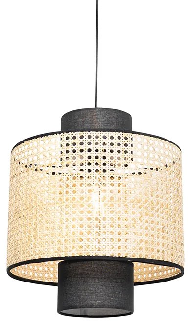 Candeeiro de suspensão rústico preto com ráfia - Kata Oriental,Rústico