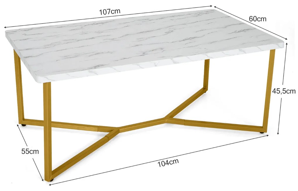 Esta mesa baixa, com um aspecto luxuoso, é uma decoração muito bonita para a sala de estar. A superfície tem um acabamento em mármore elegante que combina com o estilo da mesa. O painel MDF da superfície tem 25 mm de espessura e é muito resistente. Outro design apelativo é a estrutura em metal pintada com tinta dourada. As pernas têm uma forma única em Y e garantem estabilidade. Além disso, as almofadas ajustáveis na parte inferior adaptam-se a diferentes superfícies, como tapetes ou pisos irregulares. A mesa é muito estável e suporta até 75 kg. Desrição: Aspecto luxuoso e moderno: esta mesa de centro moderna com superfície em imitação de mármore e pernas douradas tem um aspecto luxuoso e moderno e será um destaque na sua casa. Além disso, é um complemento perfeito que dá um toque especial ao escritório ou à sala de estar. Superfície espessa e de qualidade: a superfície da mesa baixa é feita de um painel de MDF sólido com acabamento em imitação de mármore. O painel tem 25 mm de espessura, é resistente e dura muitos anos. Além disso, os cantos são arredondados para evitar choques e arranhões, tornando a mesa mais segura de usar. Pernas resistentes em forma de Y: as pernas de metal modernas têm uma forma única em Y que aumenta a estabilidade e deixa muito espaço. As pernas são revestidas com tinta dourada, por isso são antiferrugem e duráveis. Além disso, a base tem almofadas ajustáveis para se adaptar a pisos irregulares. Tamanho ideal e multiuso: o tamanho da mesa é 107 x 60 x 45,5 cm, ideal para espaços pequenos ou grandes. A superfície pode ser uma bandeja para o conjunto de chá ou um banquete para flores. Também pode ser usada como mesa para computador, para trabalhar ou socializar. Fácil de montar e limpar: esta mesinha de sofá é simples na aparência e fácil de montar. A embalagem inclui os acessórios necessários e instruções ilustradas para montá-la em pouco tempo. Além disso, graças à superfície lisa e impermeável, é fácil de limpar. Características: Superfície em imitação de mármore e base dourada que oferecem um aspecto luxuoso Superfície espessa em MDF durável Acabamentos lisos para facilitar a limpeza Cantos arredondados para evitar choques ou arranhões Estrutura em forma de Y que combina estabilidade e espaço Pés de metal com estrutura resistente que suporta até 75 kg Com almofadas ajustáveis que adicionam estabilidade extra Utilizável na sala de estar, escritório, sala de espera Cor: Branco e dourado Material: MDF e metal Dimensões totais: 107 x 60 x 45,5 cm Peso líquido: 13,5 kg Espessura da superfície: 25 mm Capacidade de carga: 75 kg A embalagem inclui: 1 x mesa baixa 1 x instruções Compre comodamente online e receba diretamente na sua casa. É rápido e cómodo