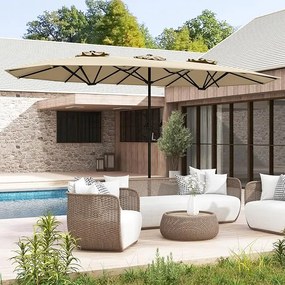 Luz solar intensa? Não se preocupe! O tecido deste guarda-sol duplo oferece uma excelente proteção UV até UPF 50+: bloqueia 98% dos raios UV sem problemas e protege a sua pele das queimaduras solares, mesmo nas horas mais quentes do dia! É resistente? Claro! Isso é garantido pelas 12 varetas metálicas de 12 x 18 mm e pelo mastro revestido a pó (Ø 48 mm) altamente resistente – sinta-se seguro sob este guarda-sol robusto e desfrute do ar fresco com tranquilidade! A cor é resistente? Sim! Fique longe de guarda-sóis que perdem a cor com o tempo, pois eles deixam o seu jardim com um aspecto desbotado. O tecido deste guarda-sol é feito de poliéster 300D de 180 g/m² e é robusto, resistente e com cores resistentes. A montagem? Sem ferramentas! Basta ligar 2 varas e fixar o mastro do guarda-sol com um suporte (não incluído). Em seguida, rode a manivela no sentido horário para abrir o guarda-sol – e pronto! Tem muitos amigos? Sejam todos bem-vindos! O guarda-sol de 460 x 270 cm proporciona uma sombra ampla, ideal para organizar uma festa no jardim. Também é adequado para eventos públicos e para a área exterior do seu café ou restaurante. Detalhes do produto: Cor: bege Material: mastro e varetas em metal, 180 g/m² poliéster Altura: 245 cm Tamanho do tecido: 460 x 270 cm (C x L) Ø do mastro: 48 mm Peso: 12,1 kg Conteúdo da embalagem: 1 x guarda-sol 1 x instruções - MAISCASA Notas: Não é fornecido um suporte para guarda-sol. Recomendamos a utilização de um suporte para guarda-sol com um peso superior a 50 kg. Não abra o guarda-sol com força, mas sim de forma suave e lenta. Limpe o tecido do guarda-sol com um pano macio humedecido com um detergente neutro. Guarde o produto num local seco e bem ventilado, mas só depois de o tecido do guarda-sol estar completamente seco. Feche o guarda-sol em dias ventosos para evitar danos. Mantenha o produto longe de fontes de fogo; proteja-o também do frio ou calor extremos e de outras condições meteorológicas, como chuva, vento, neve, granizo, etc.
