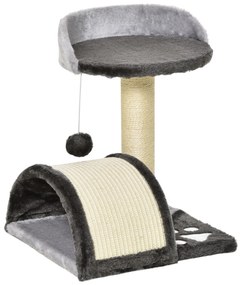 PawHut Arranhador para Gatos com Múltiplas Plataformas Cama 2 Cavernas Rede Escada Postes de Sisal 48x48x140 cm Cinzento Claro | Aosom Portugal