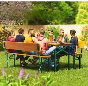 vidaXL Mesa de campismo dobrável com 2 bancos alumínio branco